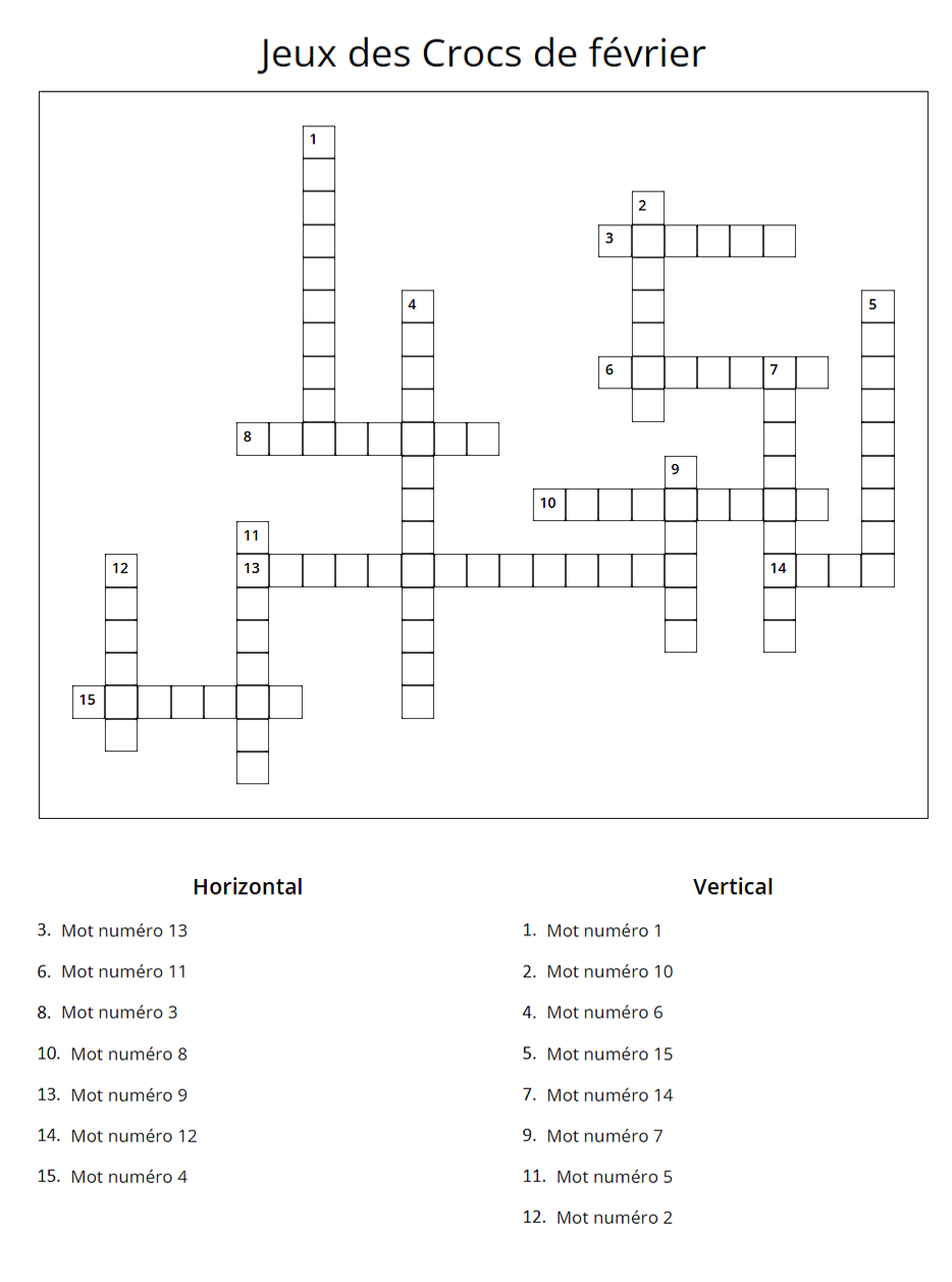 À la mi-février, Cupidon est à l'honneur. Le quatorze (mot numéro 4) est une date spéciale pour les (mot numéro 5). C'est la (mot numéro 6) et, pour l'occasion, on voit apparaître des (mot numéro 7) un peu partout. Ce qui n'est pas toujours au goût de Peeves !